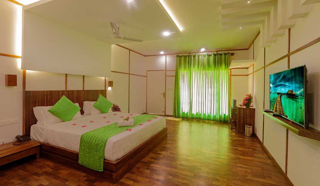 Our Deluxe Rooms are thoughtfully designed to bring you comfort and style during your Munnar getaway. Fully air-conditioned and tastefully furnished, each room features a comfortable queen-size bed, soothing interiors, and all the essential amenities to make your stay truly relaxing.